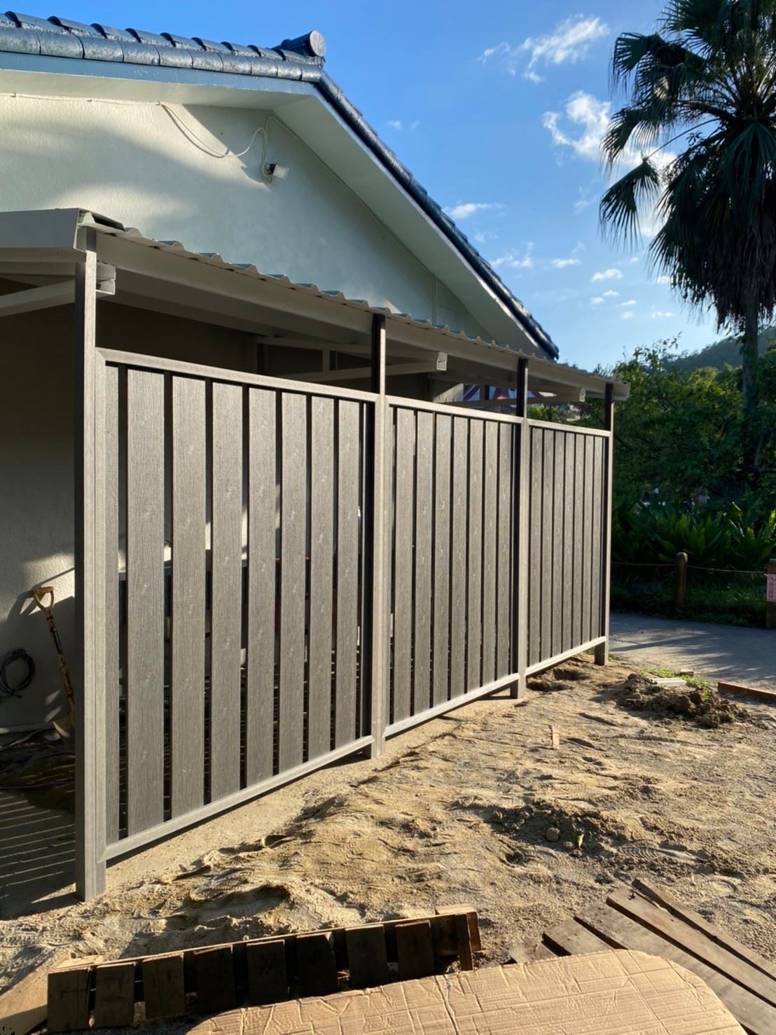 這次的工程亮點,你發現了嗎?關鍵是生森の木獨家開發的 #ㄇ字型角柱,如此一來每個圍籬的上下蓋都可以模組化方式的相接施作,大大省去木工裁切鎖固的時間,#省人力和時間 ,在一週內就完工實現了此案件!