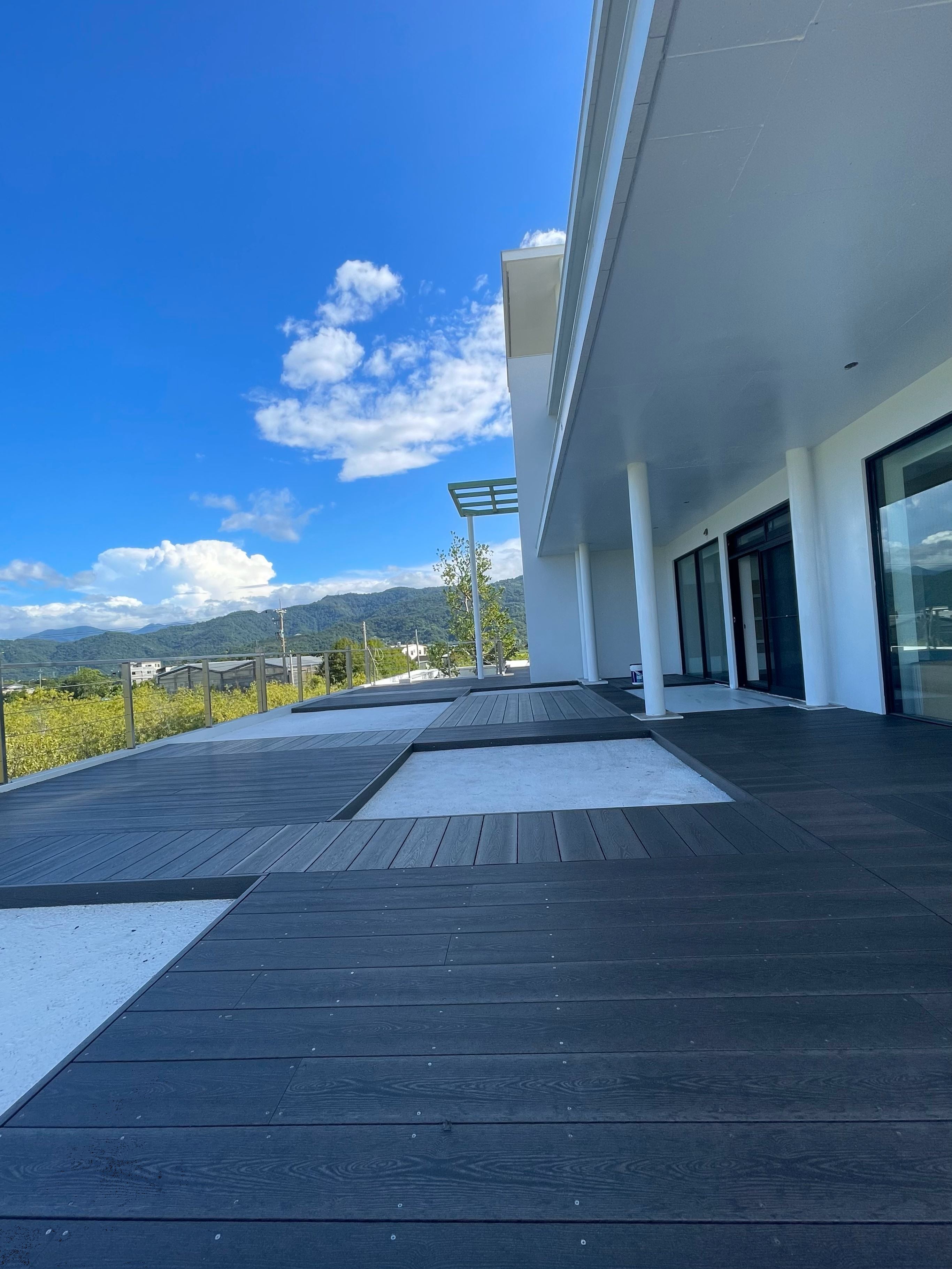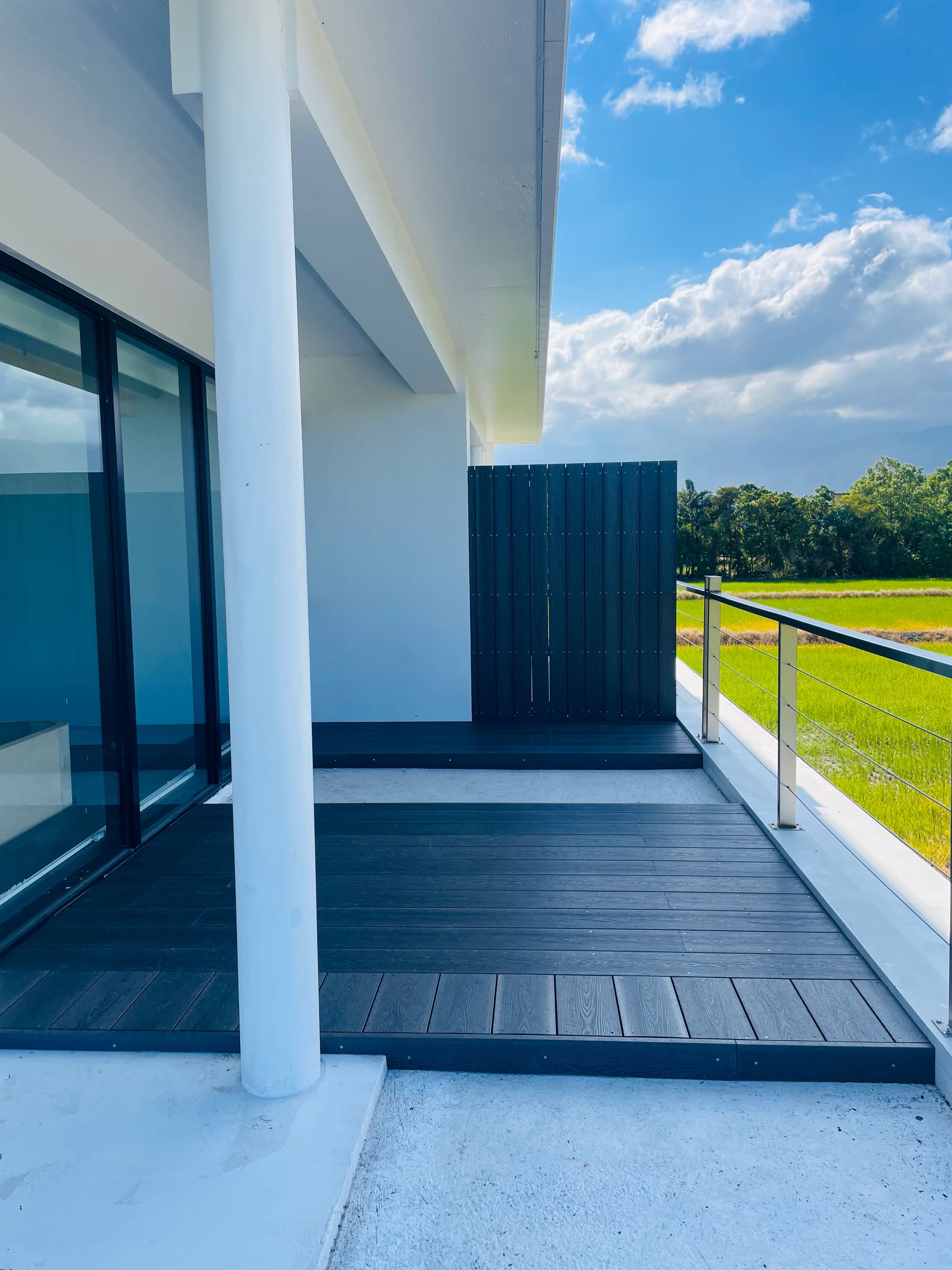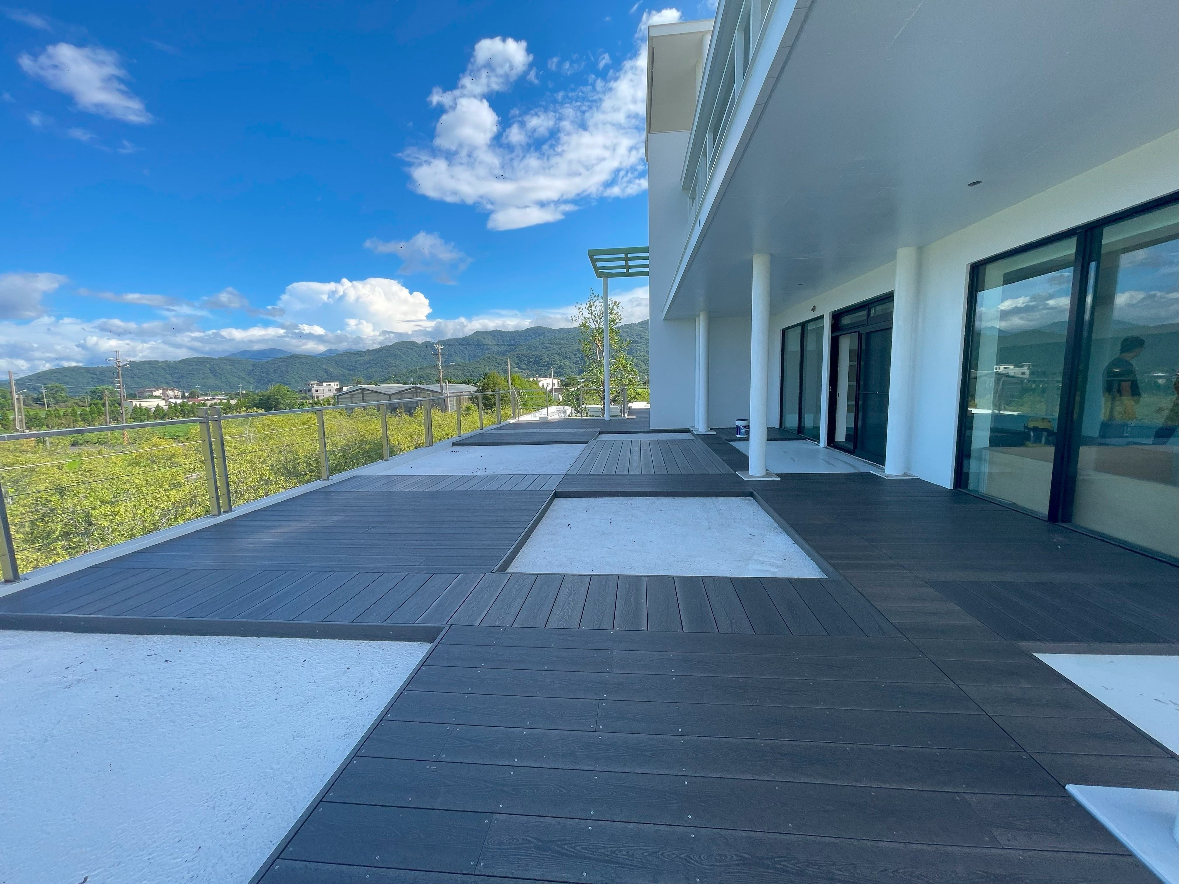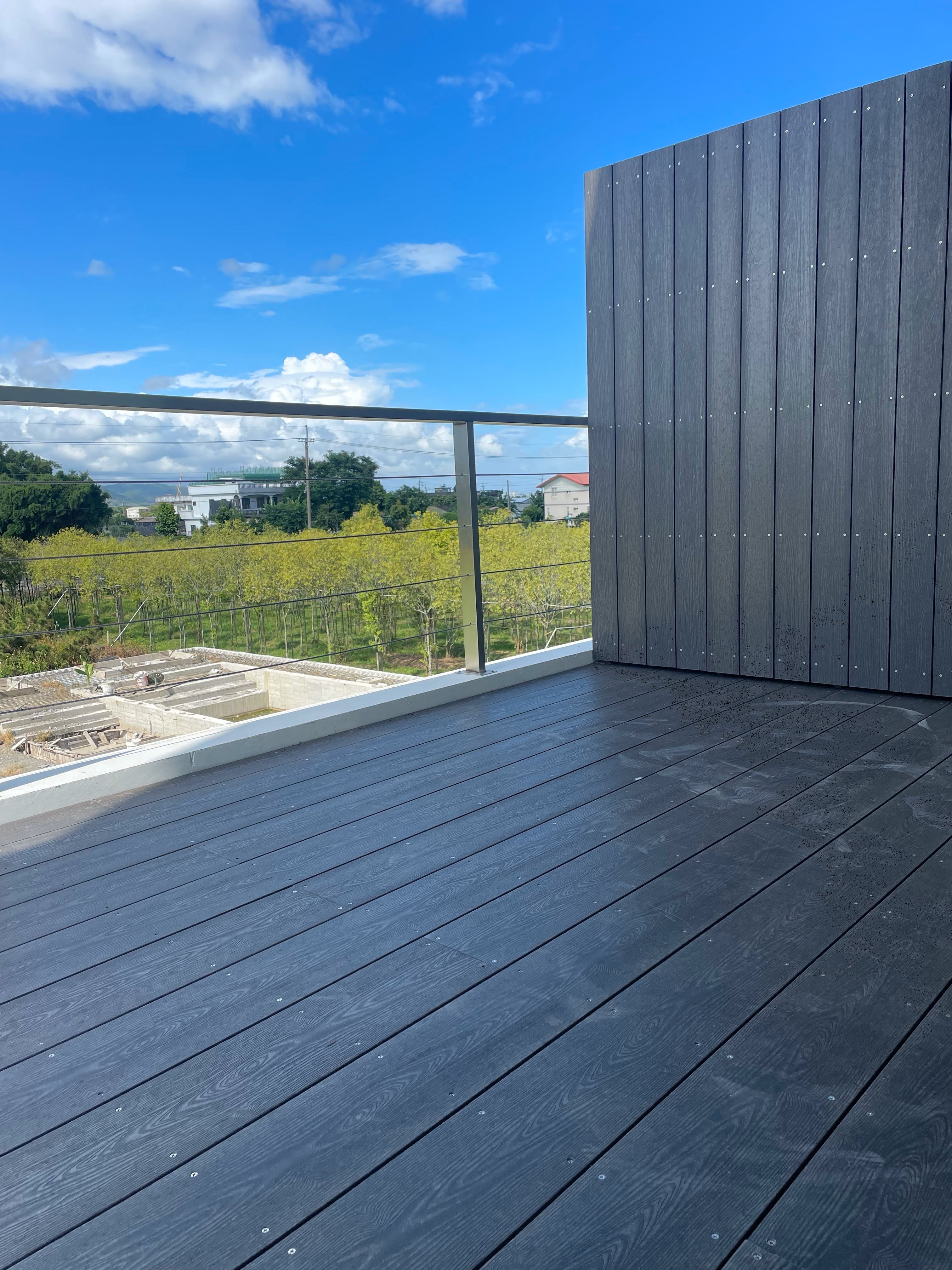 ✨ 露台採用 #鐵木色系 寬版押紋板,增添質感層次;