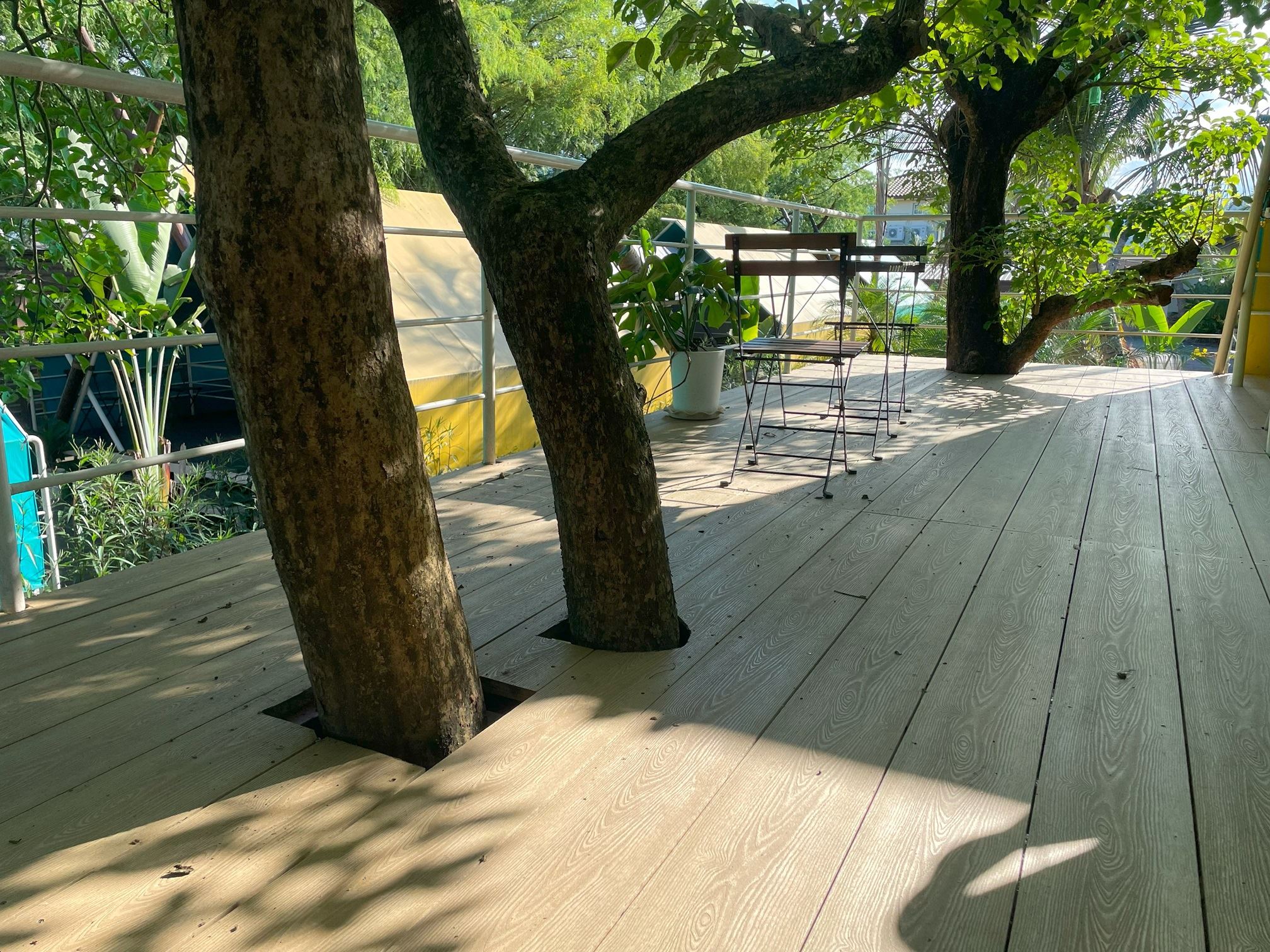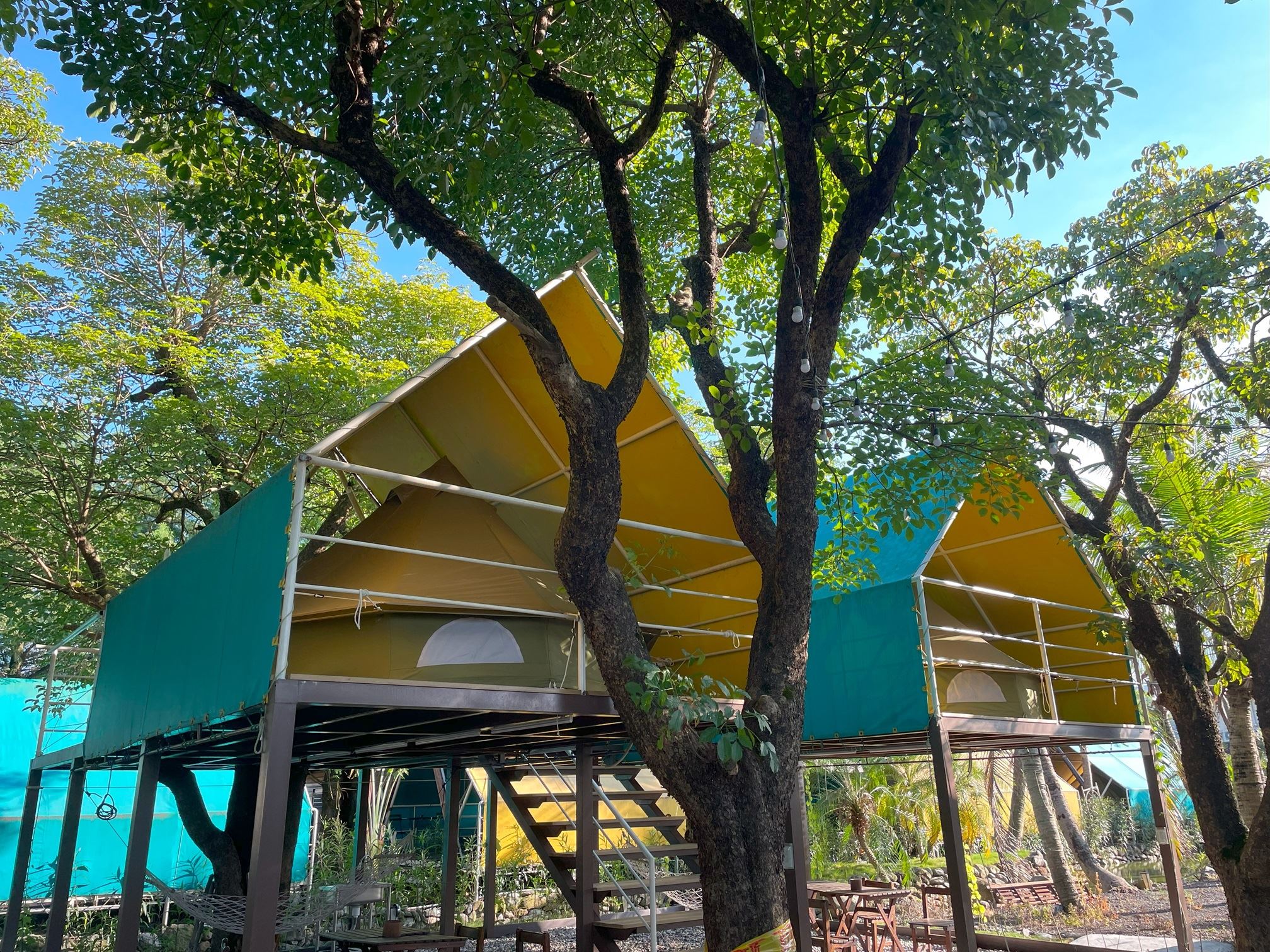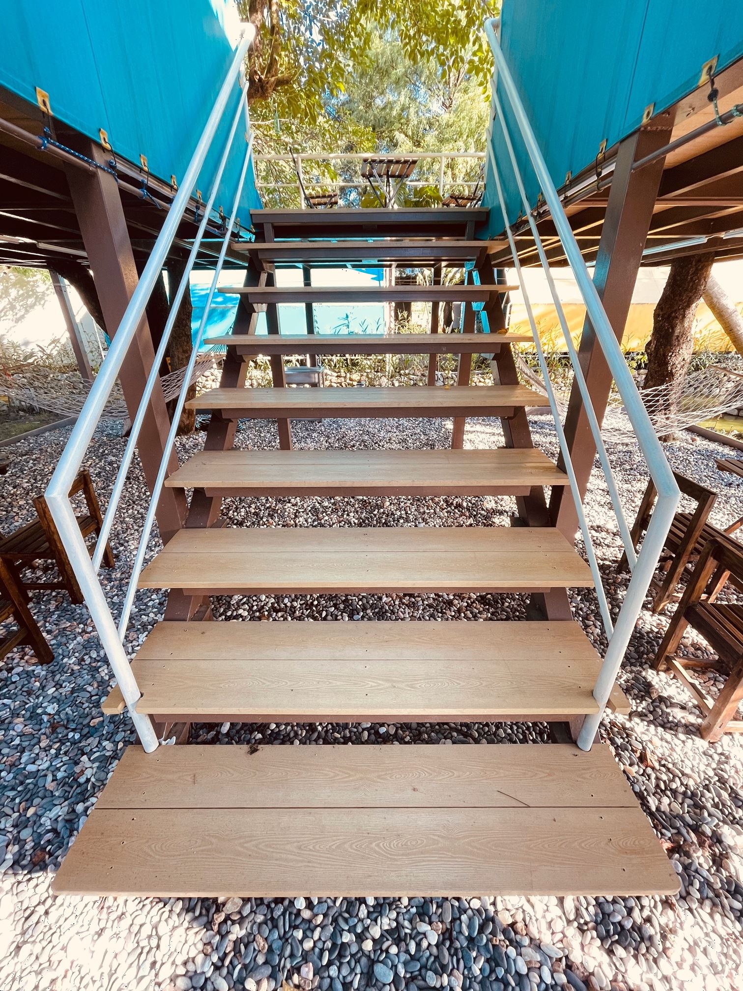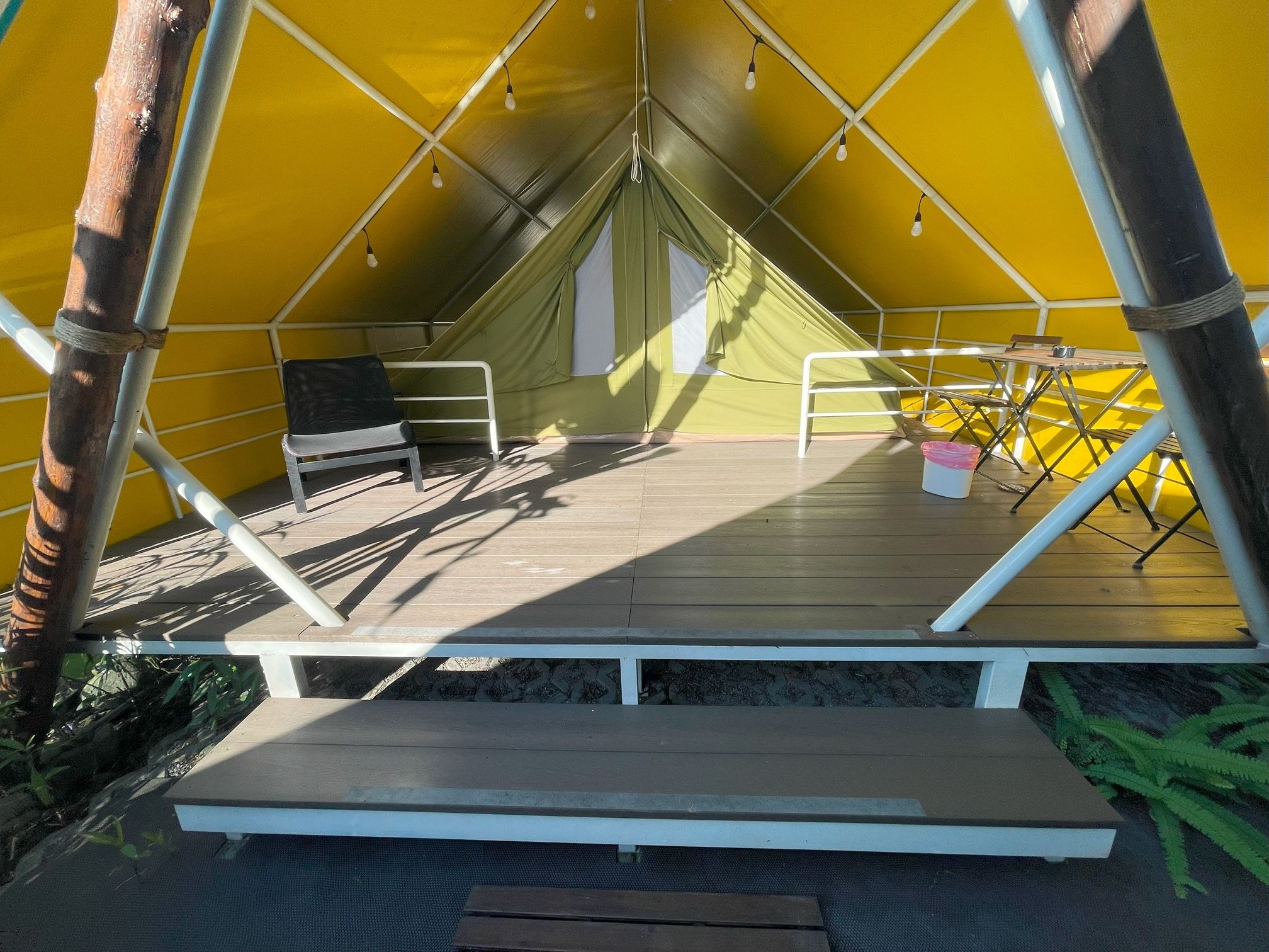 峇里島風格的私人渡假村 保有海島度假的氛圍 大樹林立加上開放式設計 導入生森木永續建材在整個空間 除了有獨立木屋的格局 還有幾乎周周客滿的高架露營帳篷區