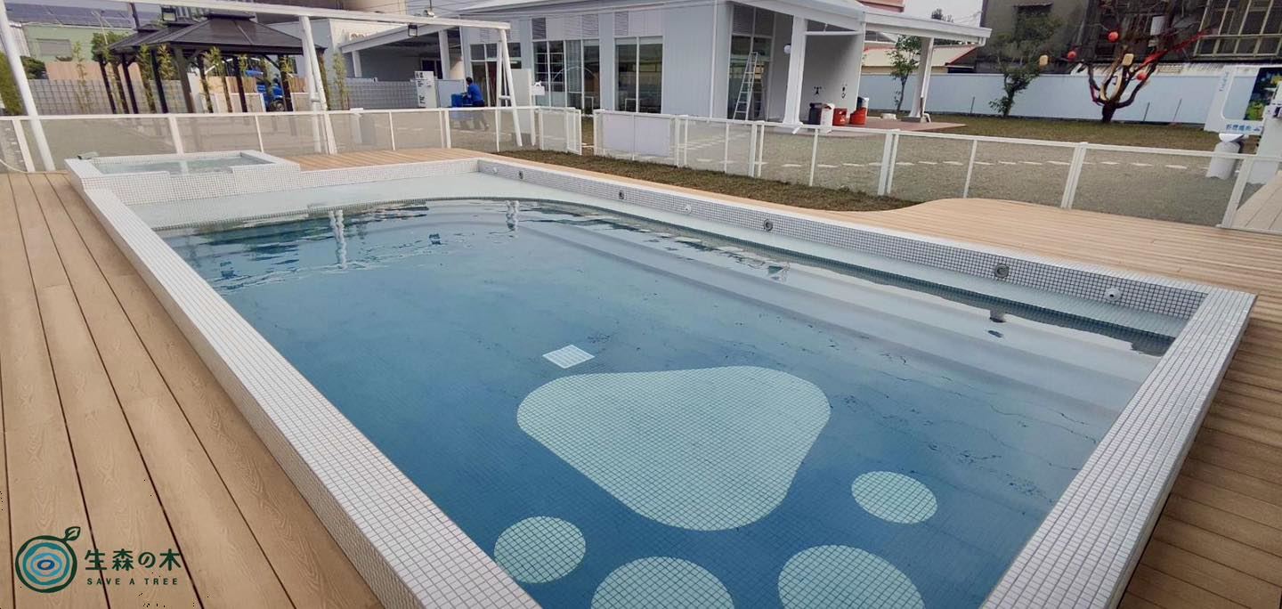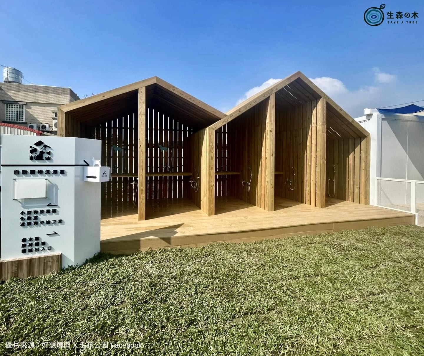 公園特別設計了大型戲水池與專屬洗澡區,成為當地毛孩最喜愛的「週末快樂據點」。在這樣充滿生命力與奔放能量的空間裡,生森木的存在,不只是地板,更是每一段快樂時光的守護者。